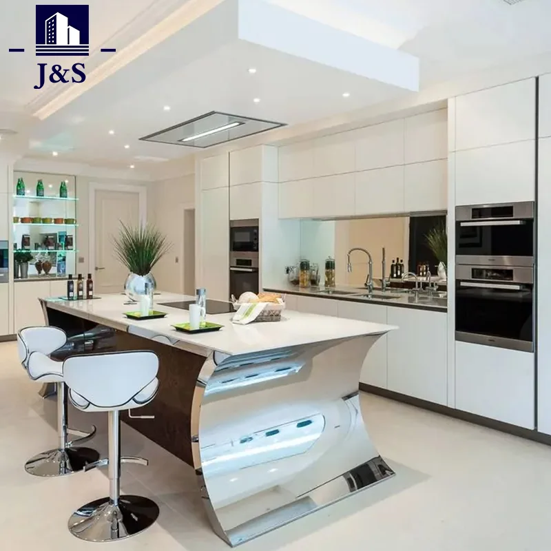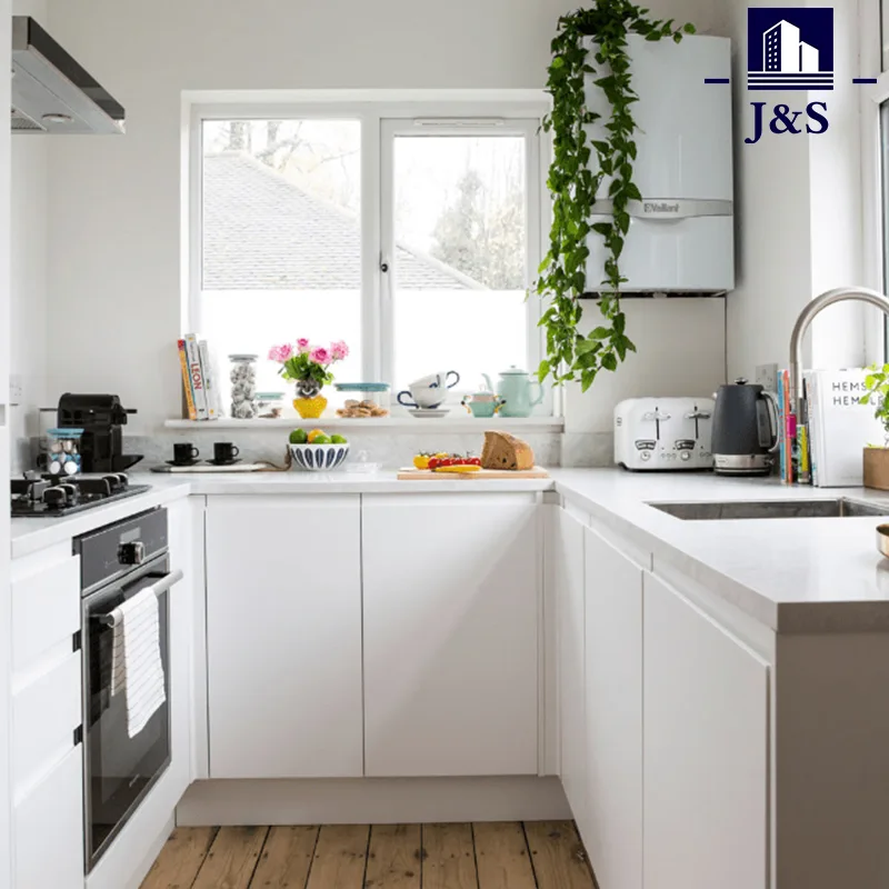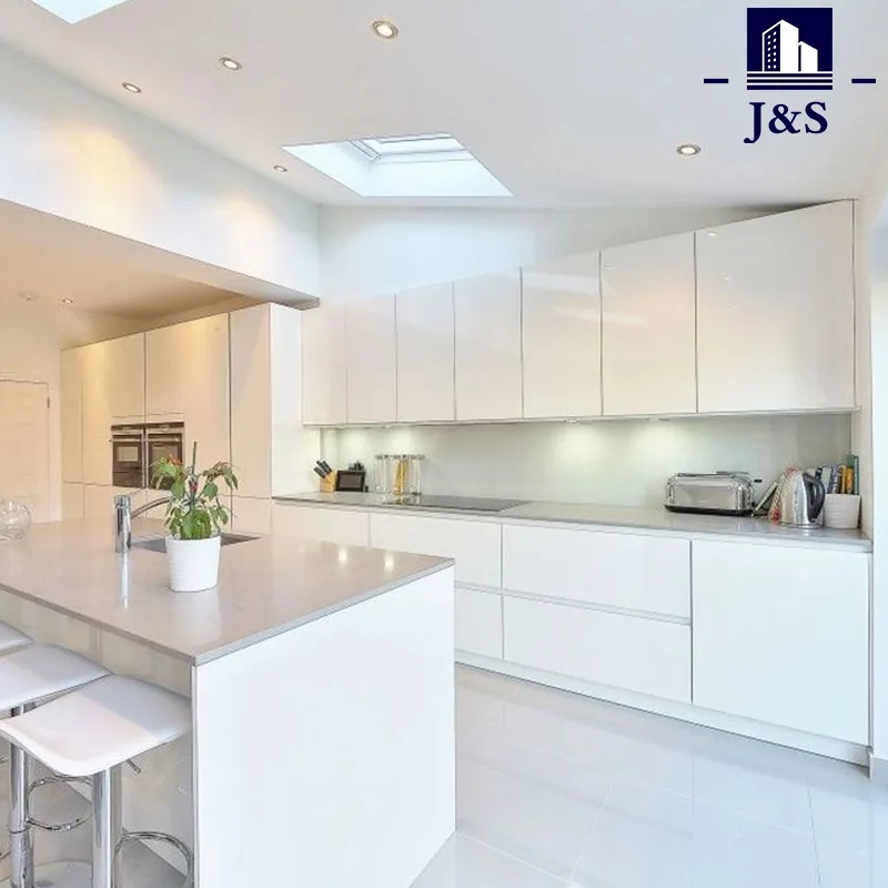 J&S ສະຫນອງຕູ້ເຮືອນຄົວສີຂາວທີ່ທັນສະໄຫມໃຫມ່, ປະຕູຊັ້ນສູງ lacquer ສີຂາວ, ຄ່າໃຊ້ຈ່າຍຕ່ໍາ ແລະຄຸນນະພາບທົນທານຕໍ່ກັບຮອຍຂີດຂ່ວນ.